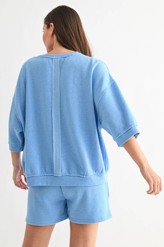 Cotton Blend Fleece Fray ¾ Sleeve Lounge Top